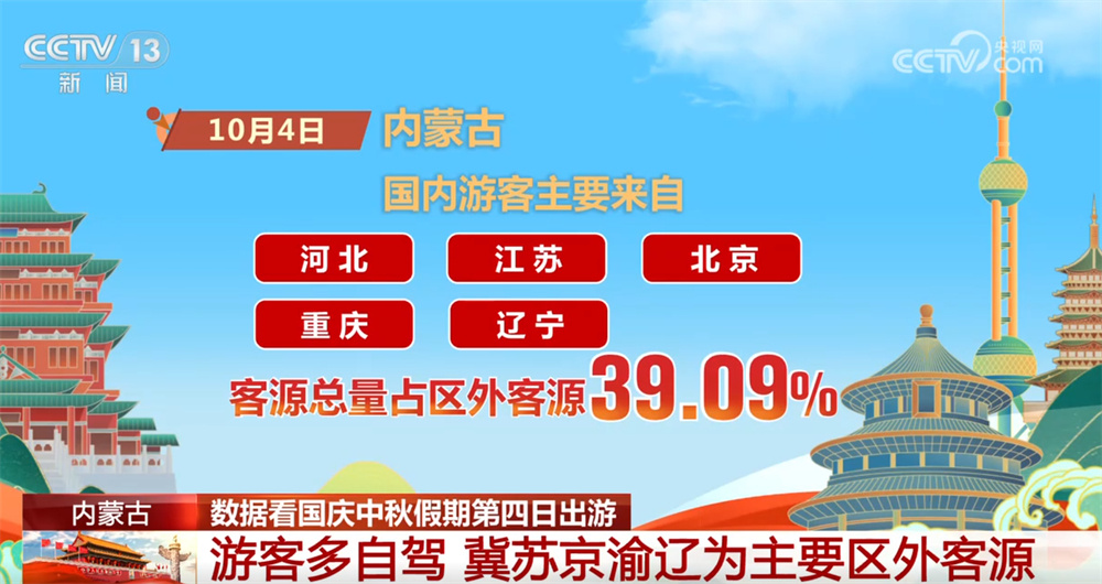 记者从内蒙古自治区文化和旅游厅了解到,假期第四天,内蒙古接待国内游客337.91万人次,同比增长7.86%。