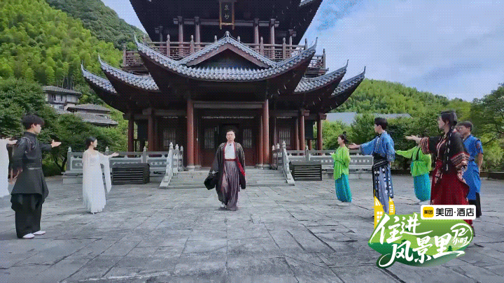 两位嘉宾满怀期待抵达葛仙村,在欢乐的歌舞中见到了葛仙村度假区主理人,经他介绍,葛仙村不仅有云雾缭绕的山水,还有千年传承的中国非遗和NPC全天无间断的表演,在这里,可以放松身心,好好过几天“神仙日子”。