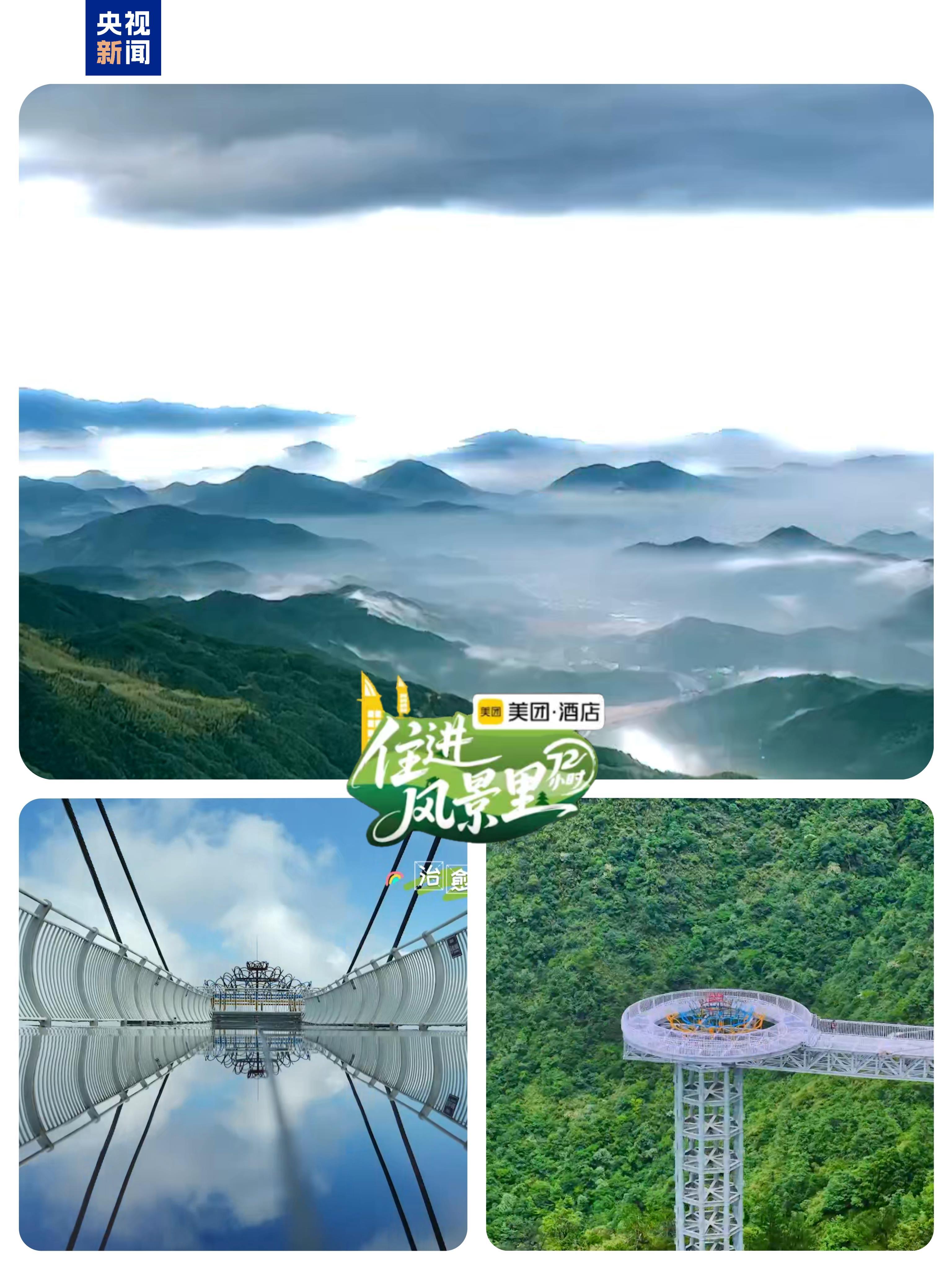 两人循着诗句线索一路到了天镜台观景,站在栈道上感受“横看成岭侧成峰,远近高低各不同”的真实写照。吴鹏沉浸在眼前的风景中,伴随着风声、蝉鸣和鸟语,拍摄出一幅大自然呈现的“千里江山图”。