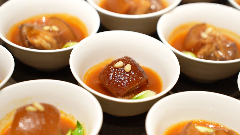 一道道融合菜品陆续上桌:“淮扬清汤八眉狮子头” 一道传承了淮扬狮子头制作精髓融合青海八眉猪的经典之作,入口即化,肉香四溢,回味悠长;“葱烧汁煎酿祁连黄菇”融合了高原山珍与淮扬技艺的匠心菜品。是一场“山珍之魂”与“烹调之韵”的对话。淮扬“三鲜酿”工艺,为牦牛肉馅注入马蹄的脆爽,再将其融入祁连黄菇的怀抱。“青海土豆赛蟹粉”用高原土豆化平淡为神奇的创意菜,复刻淮扬菜蟹粉的口感与形似蟹肉的特点,竟能模仿出蟹粉的鲜美口感并形似蟹肉,吃起来酸香开胃,口感绵软,味道以假乱真,是一道让人意想不到的素食美味。
