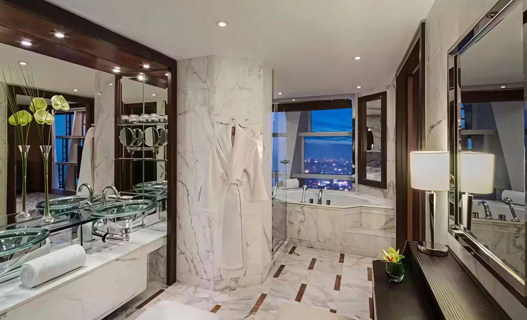 其震撼的空中大堂、环绕中庭的客房设计、以及无与伦比的浦江全景,彻底刷新了当时国人对奢华酒店的认知。