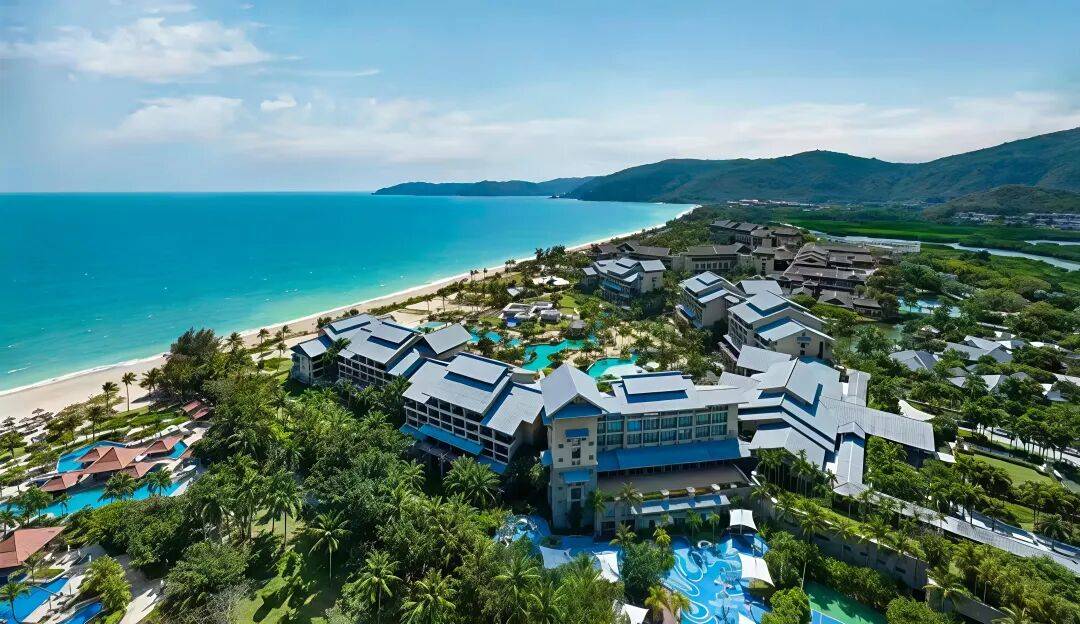 连绵的宫殿式坡屋顶、恢弘的柱廊序列、静谧的中央水景园林,将北方皇家园林的庄重气韵与南海的热带浪漫风情完美交融。
