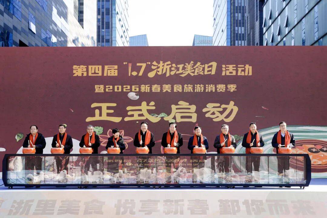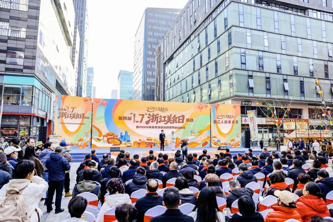 1月7日,作为全省新年首场大型美食文旅活动——第四届“1.7”浙江美食日暨2026新春美食旅游消费季在宁波鄞州南部商务区水街火热启幕。