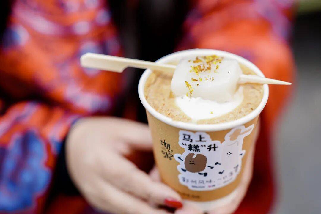 这份自带鄞州基因的“三件套”是:一份来自“浙江十大暖锅”、一个由“赵大有”第五代传人制作的“龙凤呈祥”小金团搭配一杯创意十足的“马上‘糕’升”年糕风味咖啡。传统暖锅的围炉温情、非遗金团的吉祥寓意、与西式咖啡的潮流混搭,巧妙串联起味觉、文化与社交需求,迅速在年轻消费者中引发打卡热潮。