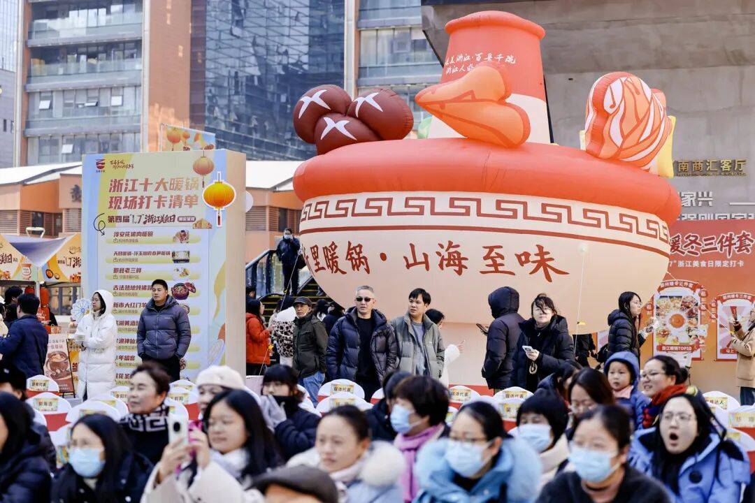 活动不仅集结了长三角近百个美食摊位,鄞州区紧扣年轻消费脉搏,更专门定制了极具网感的“鄞州暖冬三件套”,成为吸引年轻客群的流量密码。