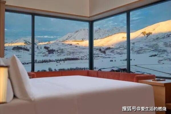 客房原木的温润与雪山的纯净巧妙融合,而且每间都有独立的雪具存放空间,细节满分。