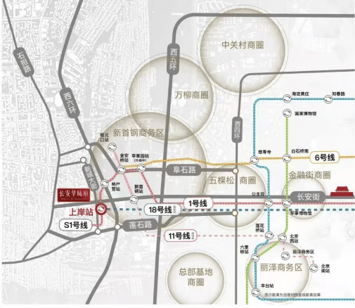 项目坐落于长安街西延线核心位置,作为北京“主动脉”,长安街西延不仅带来了交通的升级,更带动了沿线配套的全面落地。从项目出发,沿长安街西延线向东,可直达石景山、海淀核心区,向西衔接门头沟新城,路面交通畅通无阻,自驾通勤效率大幅提升。而更关键的是轨道交通:项目距 S1 号线 分钟即可抵达,这一 “地铁盘” 的核心优势,直接击中了刚需的通勤痛点。