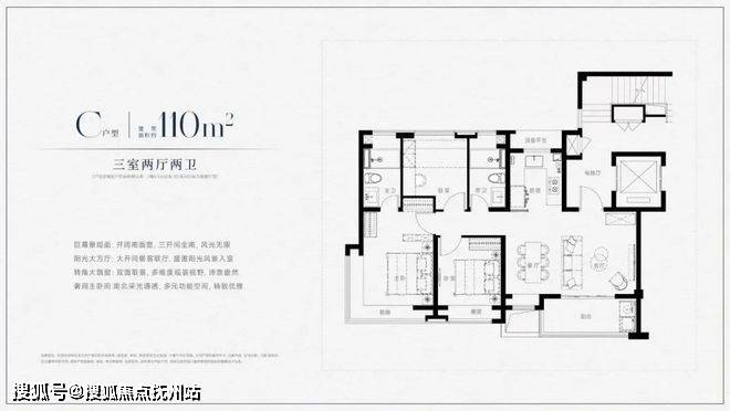 110㎡边套户型深度解析,该户型堪称“小面积段神作”,以四大设计重构改善逻辑: